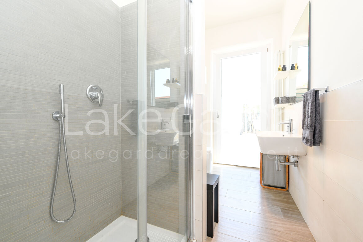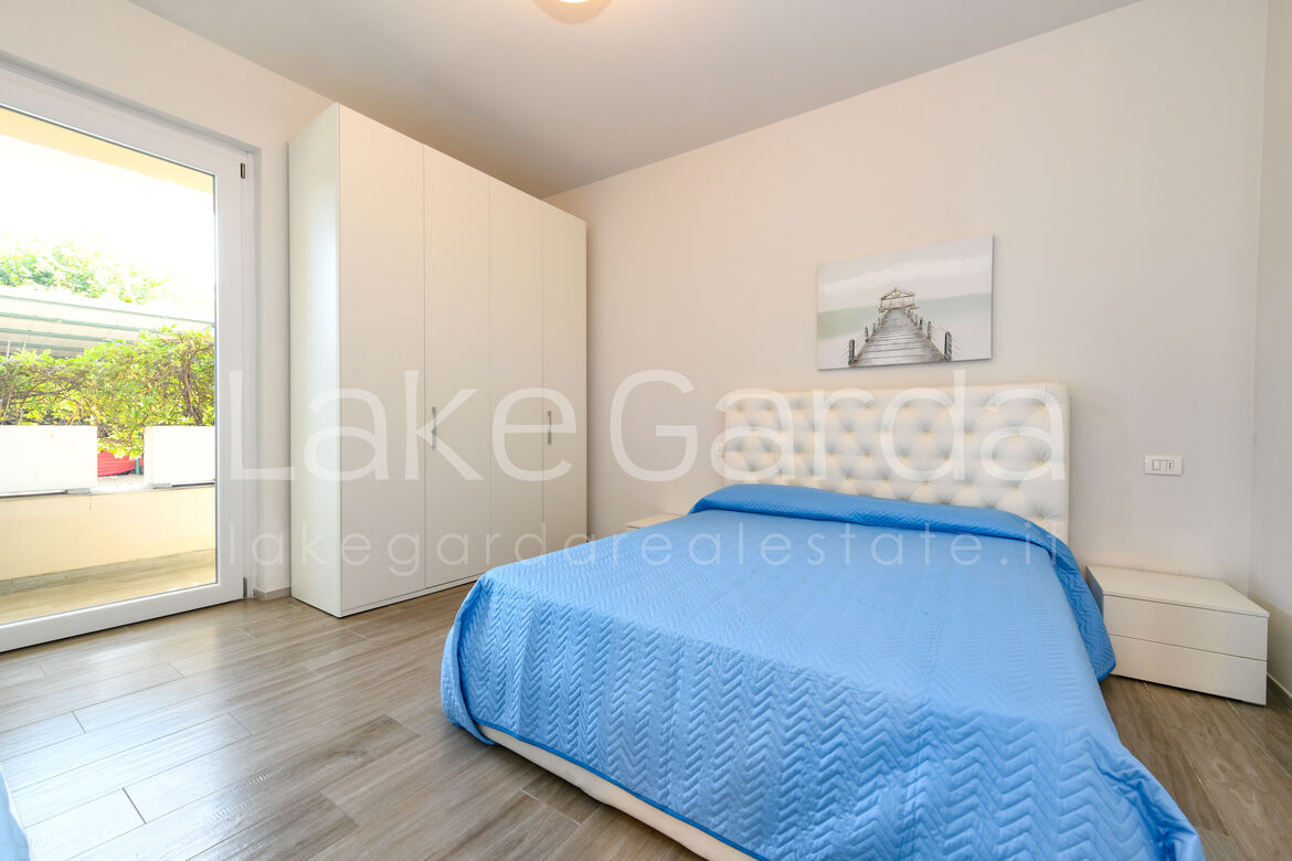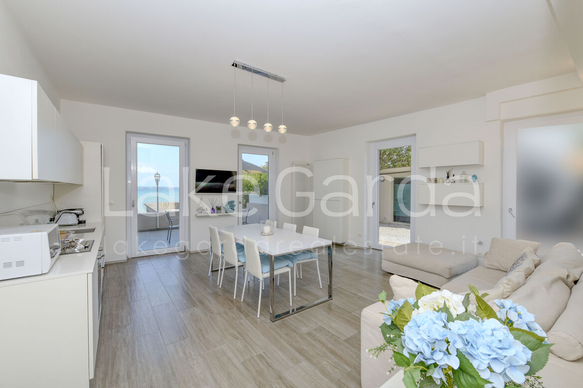 L’appartamento posto a piano terra e libero su tre lati, moderno e perfettamente mantenuto, si sviluppa su un unico livello e offre ambienti luminosi e funzionali. La zona giorno è composta da salotto con cucina a vista, che si affaccia direttamente su un incantevole terrazzo con accesso diretto alla spiaggia di conchiglie, da cui si gode di una vista lago assolutamente mozzafiato.