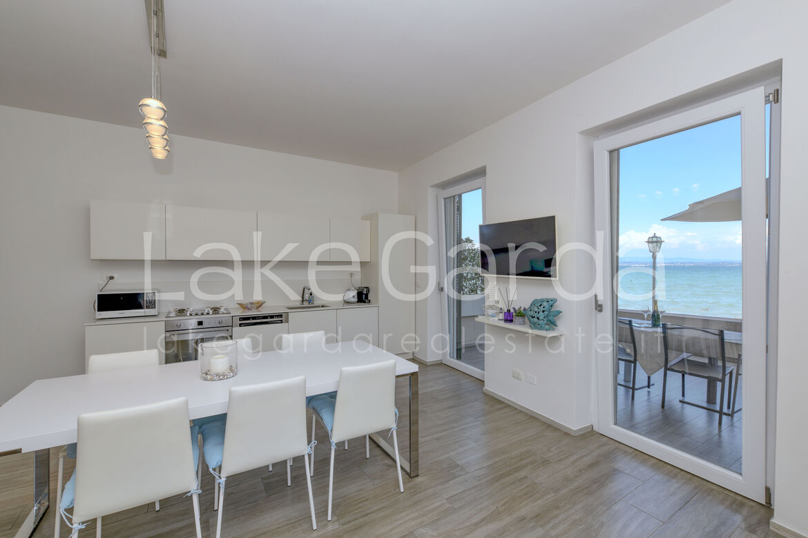 In posizione esclusiva in riva al lago, sulla rinomata e ambita penisola di Sirmione, proponiamo in vendita un elegante appartamento con due camere da letto, situato all'interno di una palazzina riservata e ben tenuta, composta da sole 10 unità abitative, garantendo tranquillità e riservatezza.